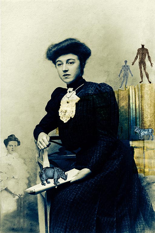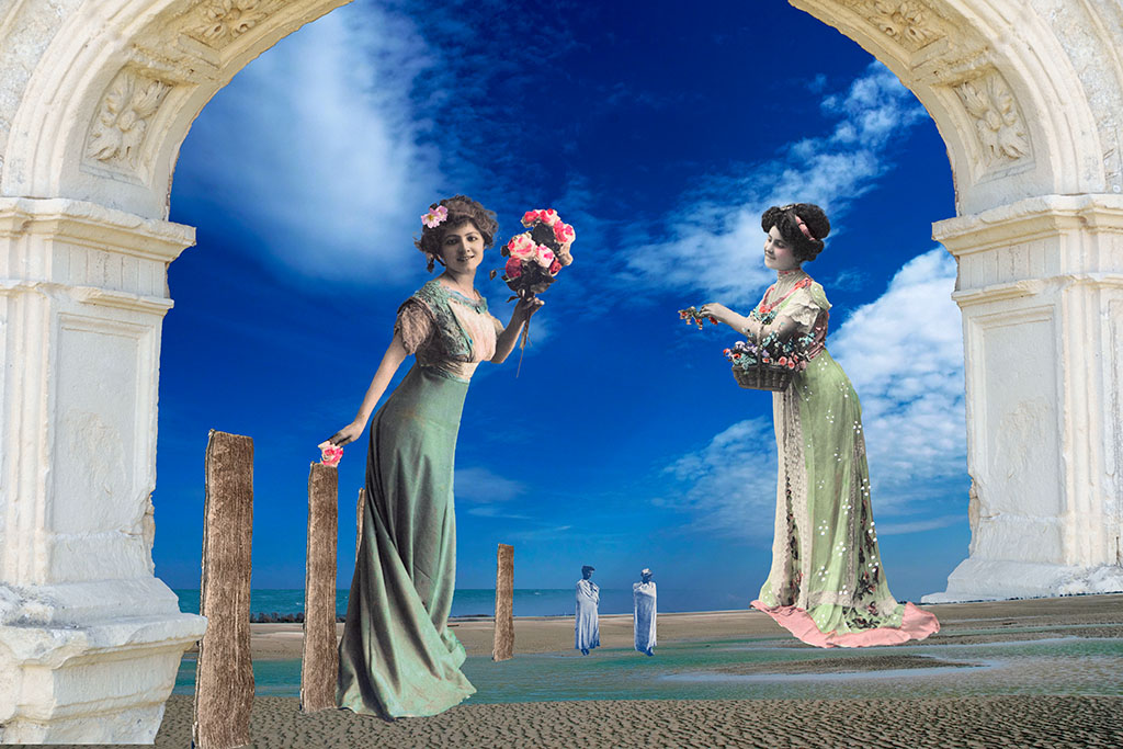 Ces photo-montages s’apparentent à des scènes de genre plus ou moins naïves, plus ou moins joyeuses et complètement irréalistes. Les personnages sont en majorité issus d’anciennes photographies et cartes postales. Les décors proviennent de photographies personnelles et d’ouvrages anciens tombés dans le domaine public.