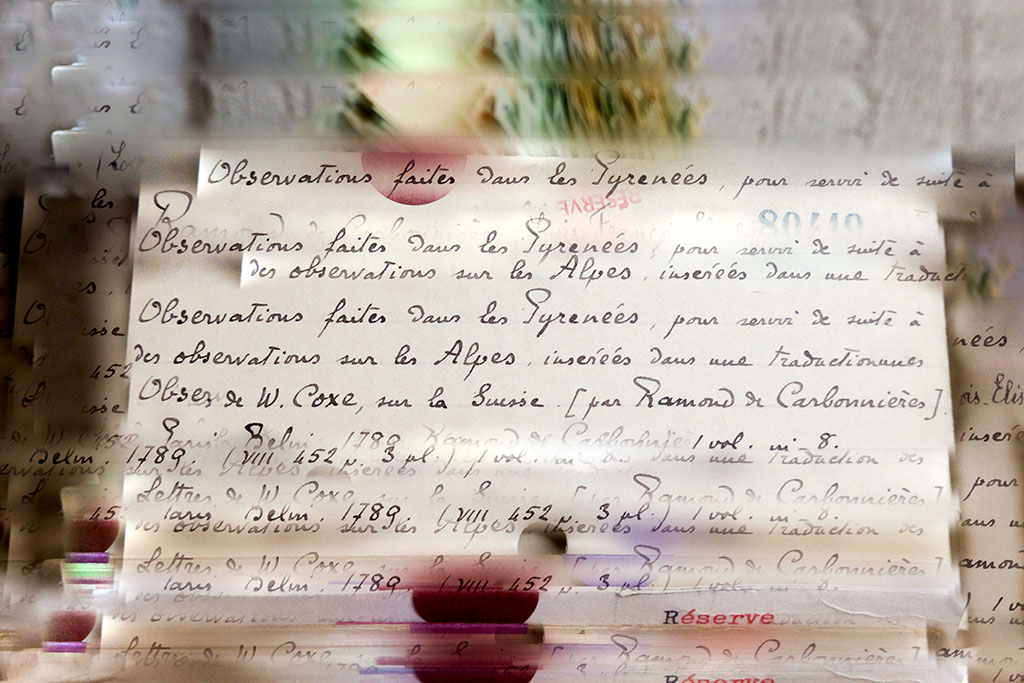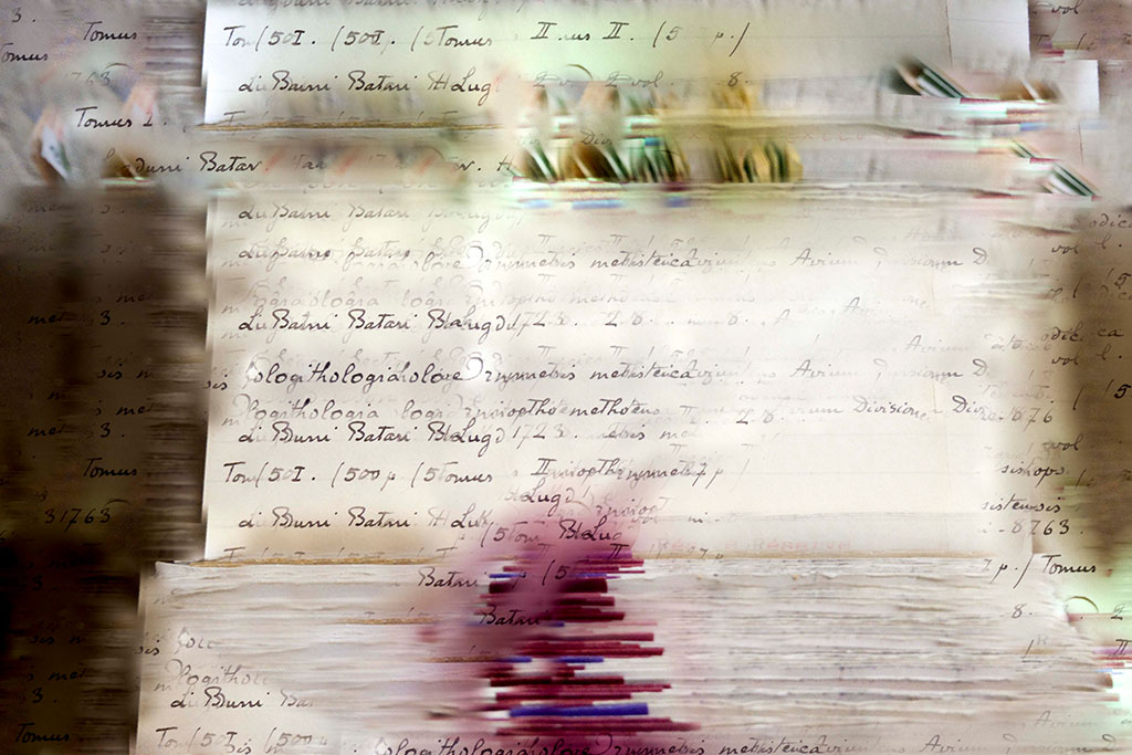 Ces montages reprennent les anciennes fiches manuscrites des bibliothèques universitaires sur lesquelles se troublaient les yeux de leurs rédacteurs et de leurs lecteurs. Devenues obsolètes, elles ont disparu des learning centers contemporains mais on garde l’espoir de les voir toutes élevées au rang d’objet patrimonial.  Les photographies ont été prises en 2021 dans la réserve de la bibliothèque de l’Université de Lille-SHS avant sa fermeture pour travaux et le déménagement des collections.
