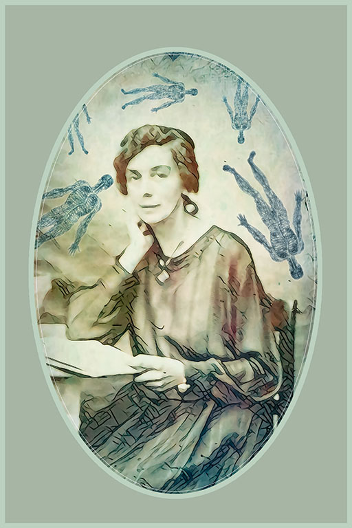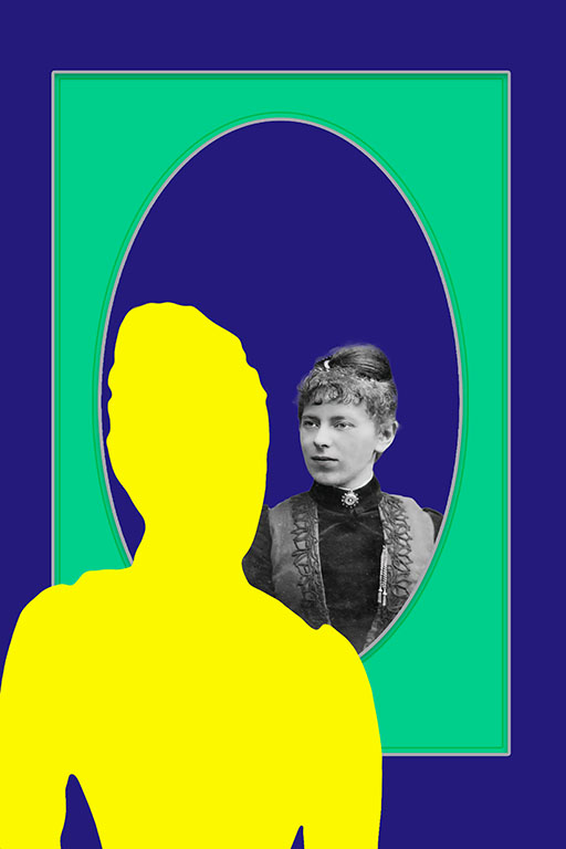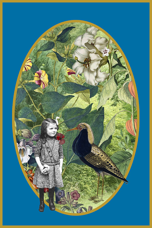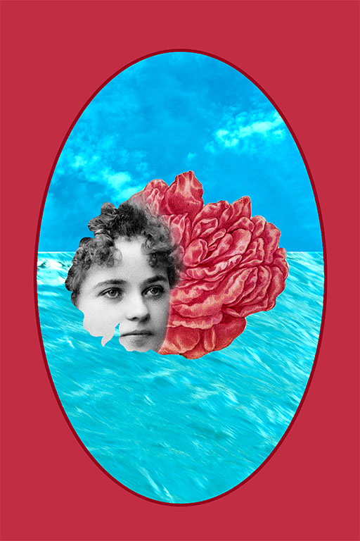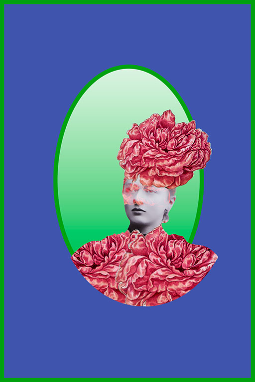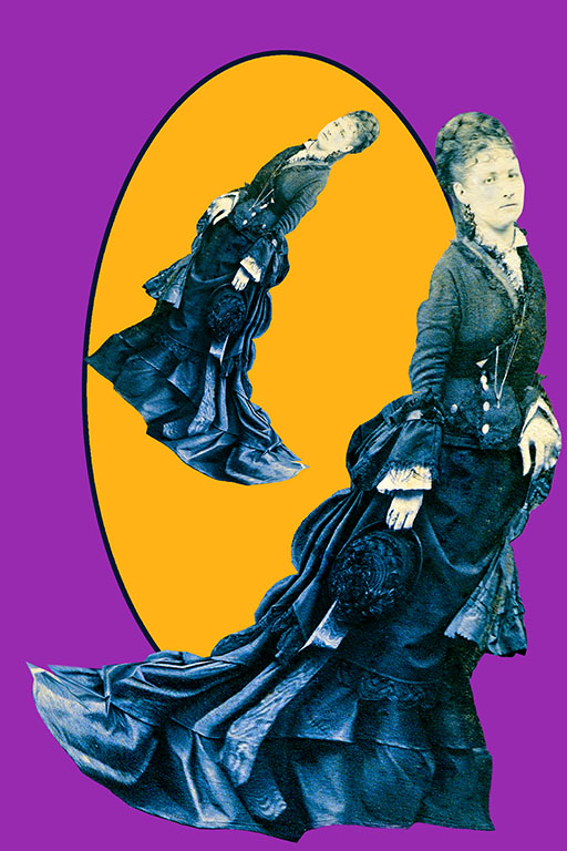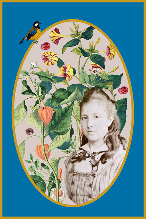 Cette série revisite en toute liberté les anciens portraits en médaillon. Trônant dans les albums des familles bourgeoises, ils ont contribué au succès des cartes de visite faisant par là le bonheur des photographes, de la seconde moitié du XIX° jusqu’au début du XX°. Témoignages de réussite économique et sociale, ces portraits reprenaient les codes classiques du buste et du médaillon et donnaient à la bourgeoisie l’image de respectabilité qu’elle recherchait. Les visages étaient graves, l’arrière-plan sobre et uni. Et, pour des raisons techniques évidentes, la photo était en noir et blanc. Les montages présentés se jouent de ces codes : apport de couleur et parfois d’illustrations, décalage du modèle par rapport au médaillon, introduction de portraits en pied … Ces aménagements apportent un peu de distanciation au regard des stéréotypes véhiculés par ces photos.