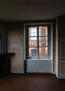 Château blanc, château rouge. Château résidentiel, château industriel. Deux châteaux qui se juxtaposent en un subtil agencement sans que jamais les ouvriers ne puissent accéder au domaine privé ni en croiser des yeux ses membres. On entre dans les ateliers par le côté cour, dans le château blanc par le côté Ternoise. Les fenêtres du château blanc sont claires et transparentes ; celles des ateliers sont blanchies et opaques. Une hiérarchie du regard complète celle du pouvoir, séparant ceux qui ont droit à la clarté de ceux qui en sont privés, ceux qui ont vue sur l’extérieur de ceux qui en sont coupés. Tu ne peux me voir. Je ne peux te voir. Nos deux mondes sont séparés.